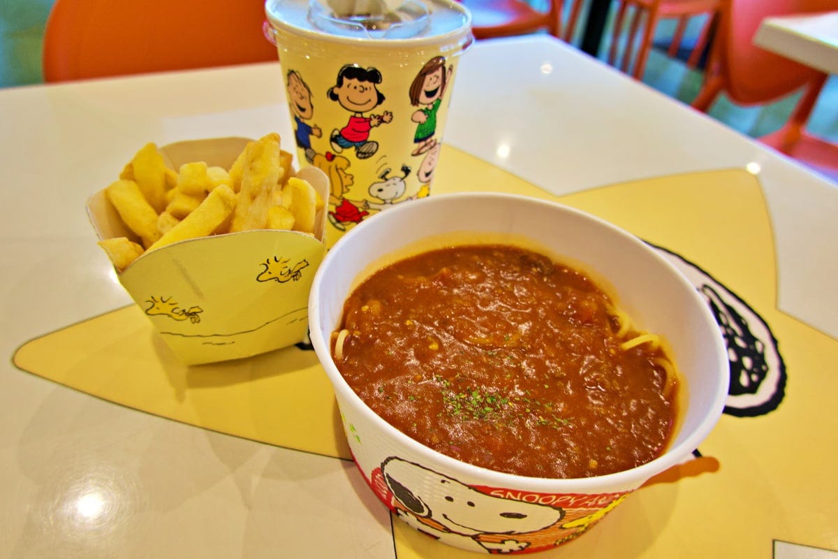 このほか、「テリヤキビーフバーガーセット」「ミートスパゲティセット」など、ボリューム満点のフードもラインナップ。お腹も心も満たされる“スヌーピー尽くし”の時間が過ごせます。