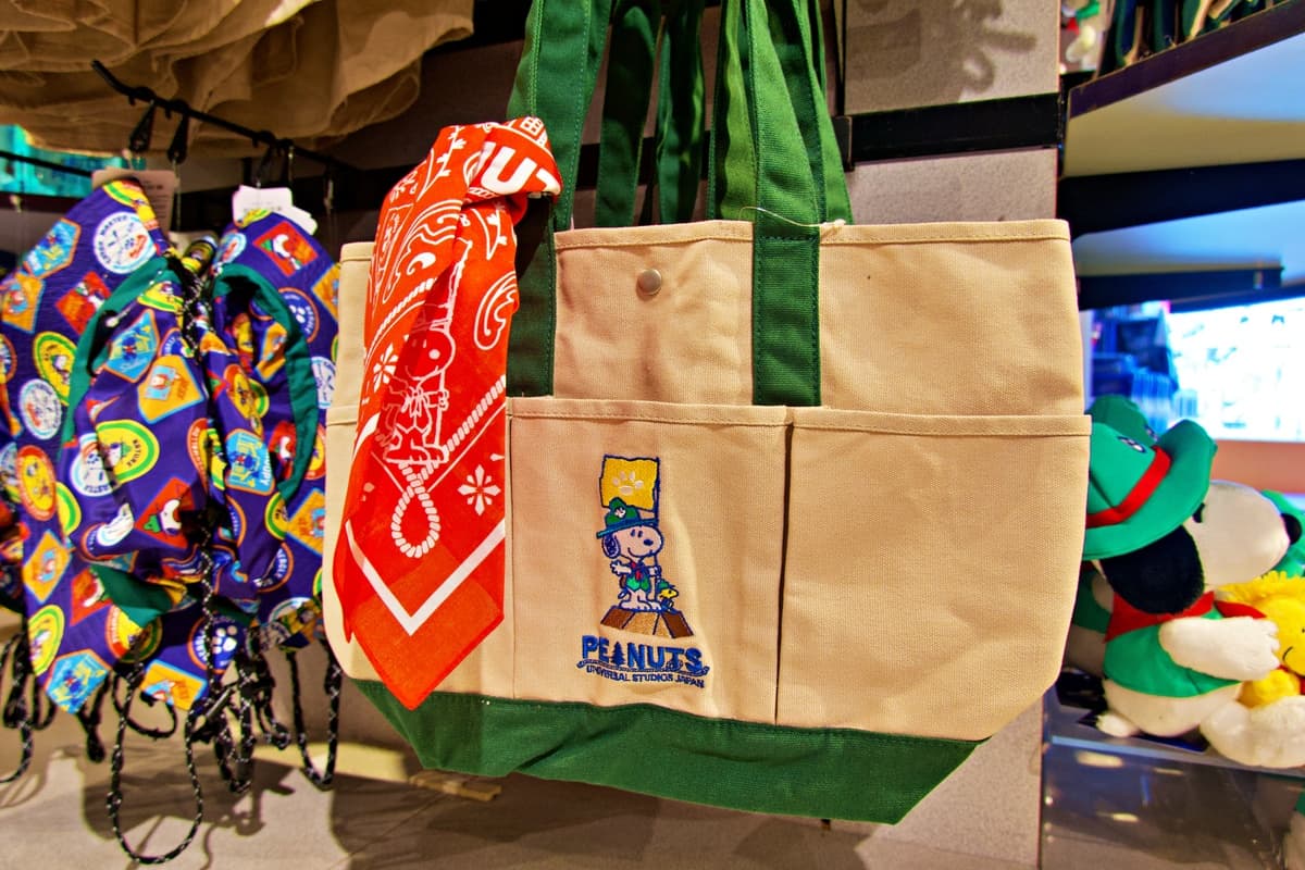 「ビーグル・スカウト」のスヌーピーがキュートな「バンダナ付きトートバッグ」は、キャンバス生地に、肩掛けしやすい長さの緑色のハンドルが使い勝手抜群。付属のバンダナは取り外して使え、首や手首に巻いたりヘアアクセにしたりと、スヌーピーの衣装とリンクコーデも楽しめます。