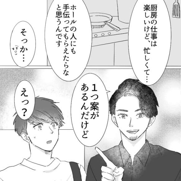 キッチンの仕事量が多すぎる…!不満に感じていた主人公に店長が提案した“賢すぎる”解決策とは!?