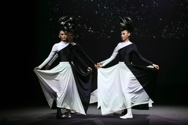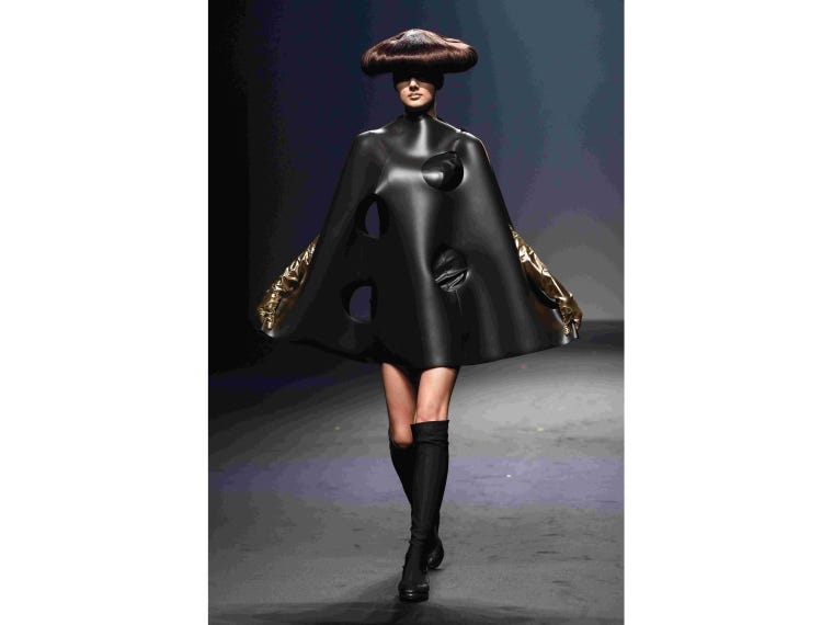 「お菓子とのコラボレーションも、きのこをイメージしたショーも生まれて初めて。初めてだからこそイメージが湧いた」とコシノ。「今回はコレクションというより、一種の遊びの世界。きのこの山を食べるのも食事ではないし、遊びのような感覚。その遊び心で作った」と語った。