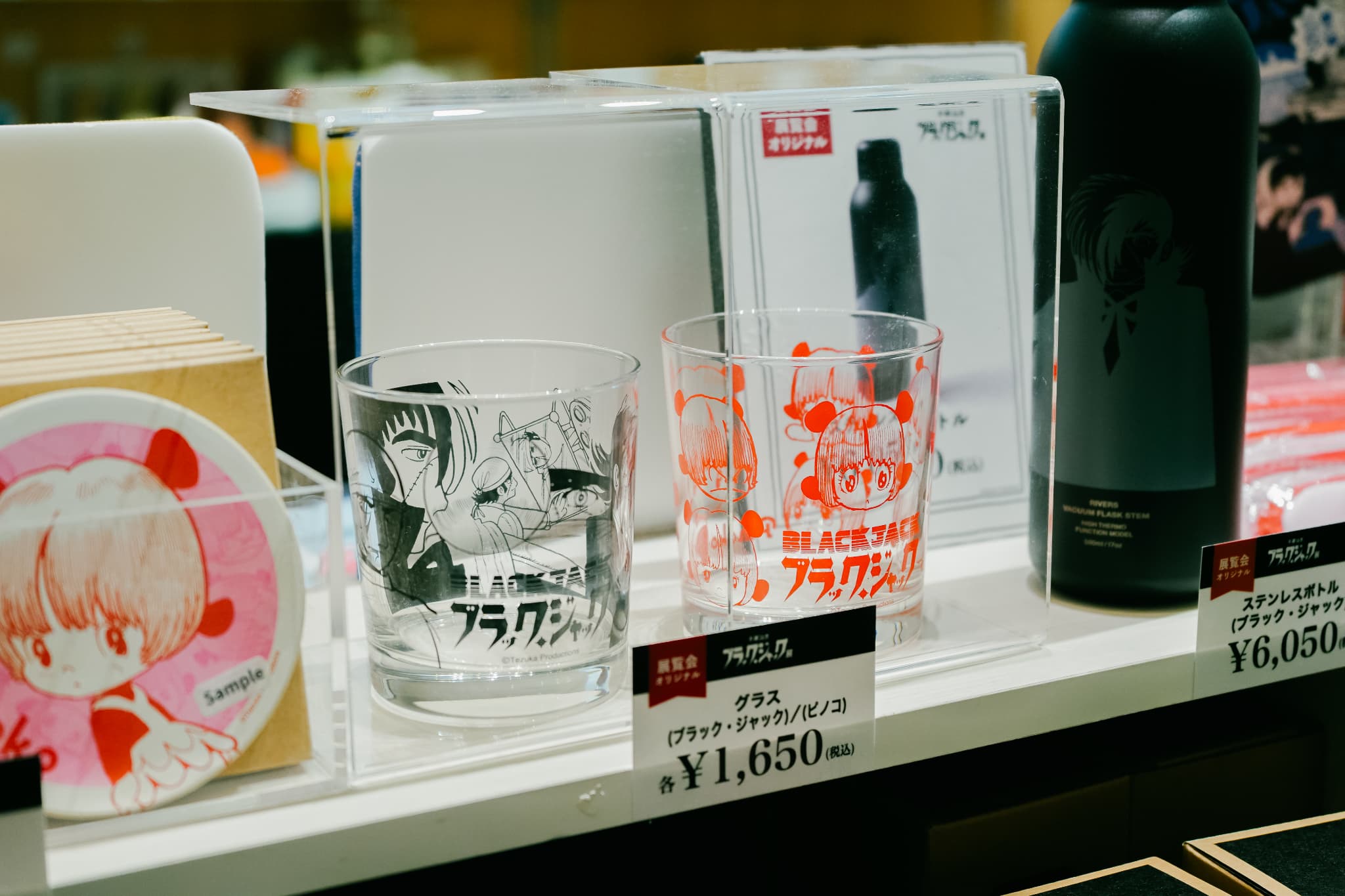 展示を抜けた先のグッズショップには、『ブラック・ジャック』の世界観を堪能できるアイテムがずらり。
