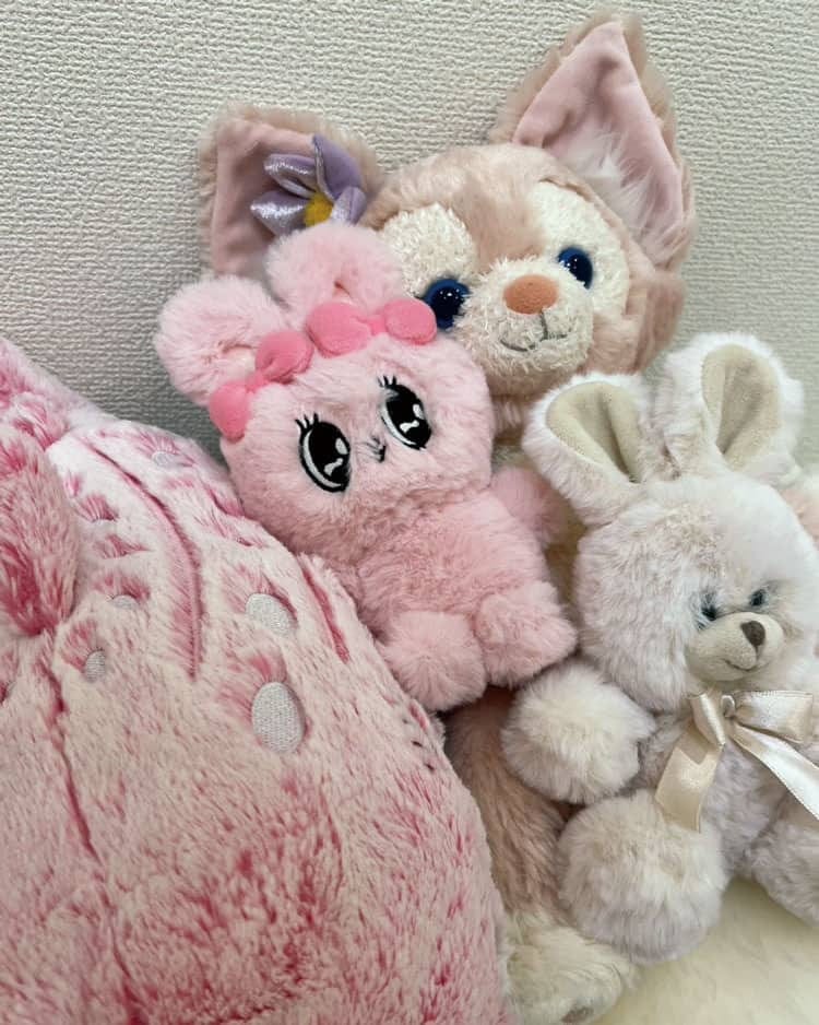 「ベッドの上にお人形を集合させて、いつも癒されています♡ ピンクのコが多いかも」
