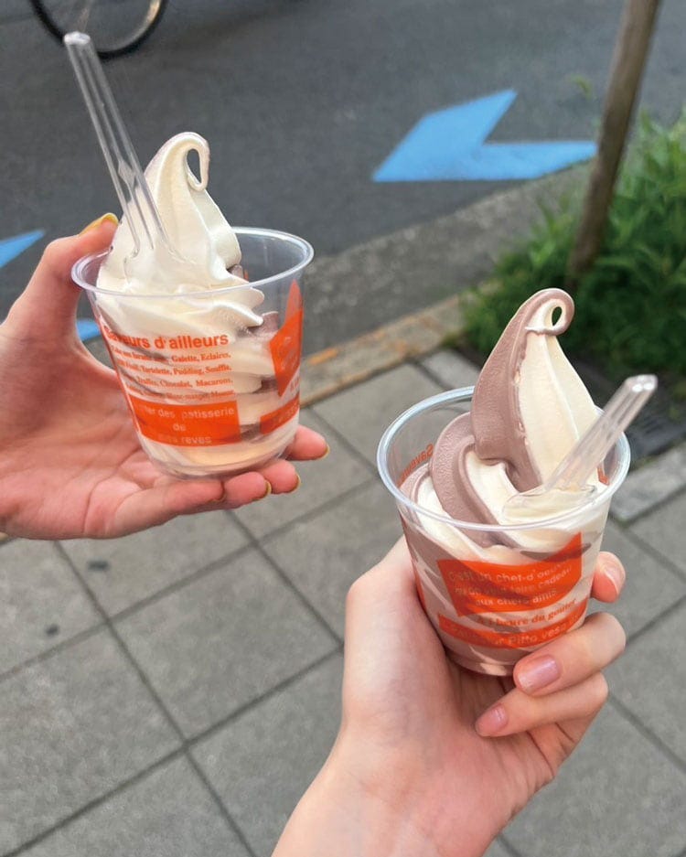 「Rayの撮影の合間にアイスを食べました。Ray㋲のりなちゃんと手をつなぎながらアイスができるのを待ってました。うれしかったです!」