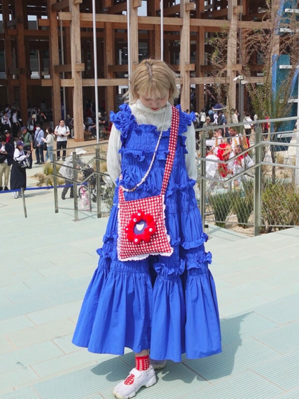万博会場はもちろん、日常的にもミャクミャクを意識したスタイルを楽しむ動きが広がった。インスタグラムとティックトックで投稿された「#万博コーデ」「#ミャクミャクコーデ」から、ひときわ目を引いたルックを紹介。