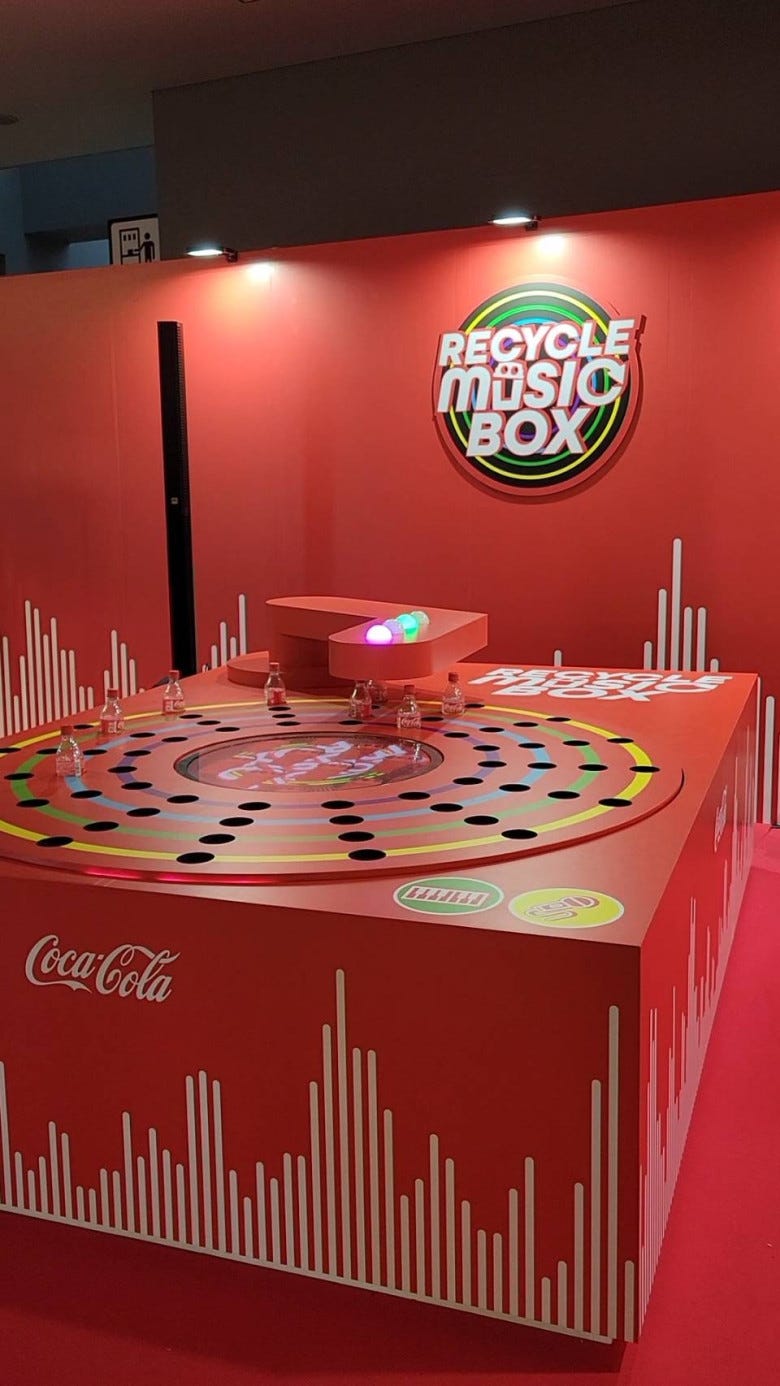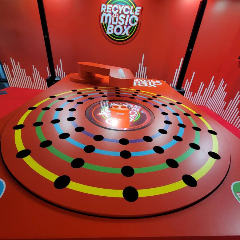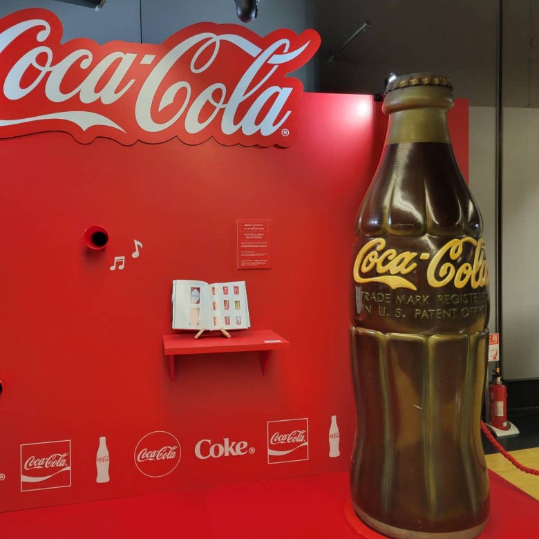 ここでは歴代コークボトルの展示と音楽を楽しめます。