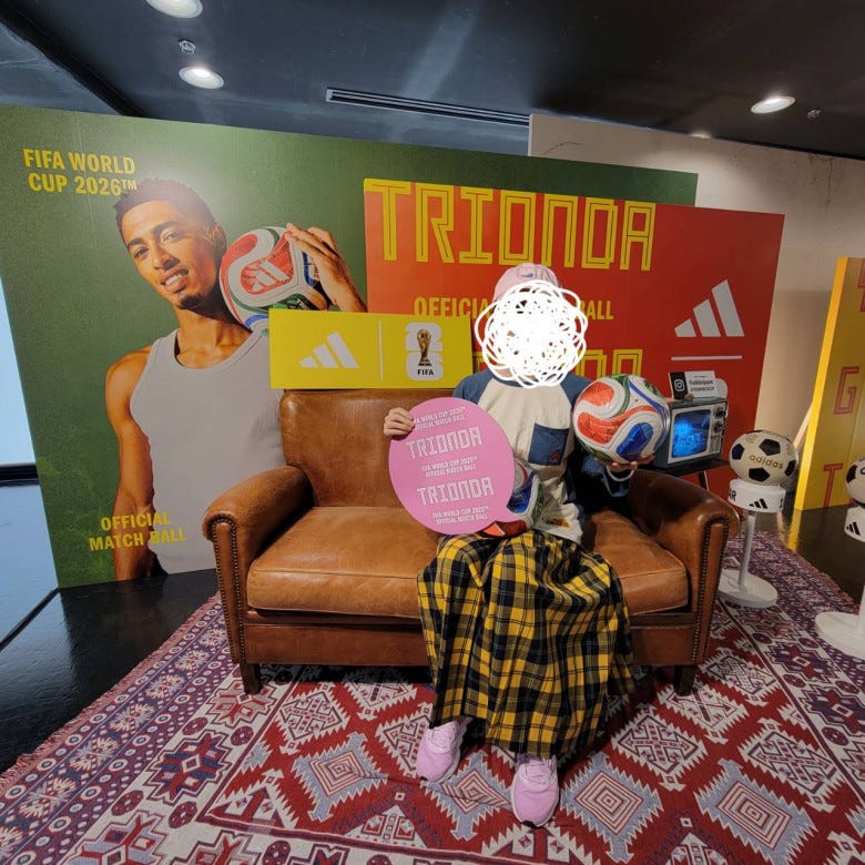 FIFAワールドカップ公式試合球が展示されていて、写真を撮ると、特製ステッカーを先着で貰えました。