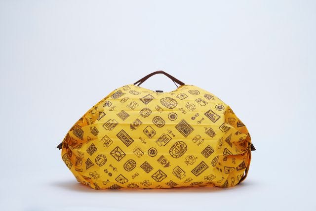 「福砂屋オリジナルデザイン/ShupattoコンパクトバッグM」(2,750円)※サイズ:約35cm×30cm(約15L)/折りたたみ時 約Φ6cm×8cm