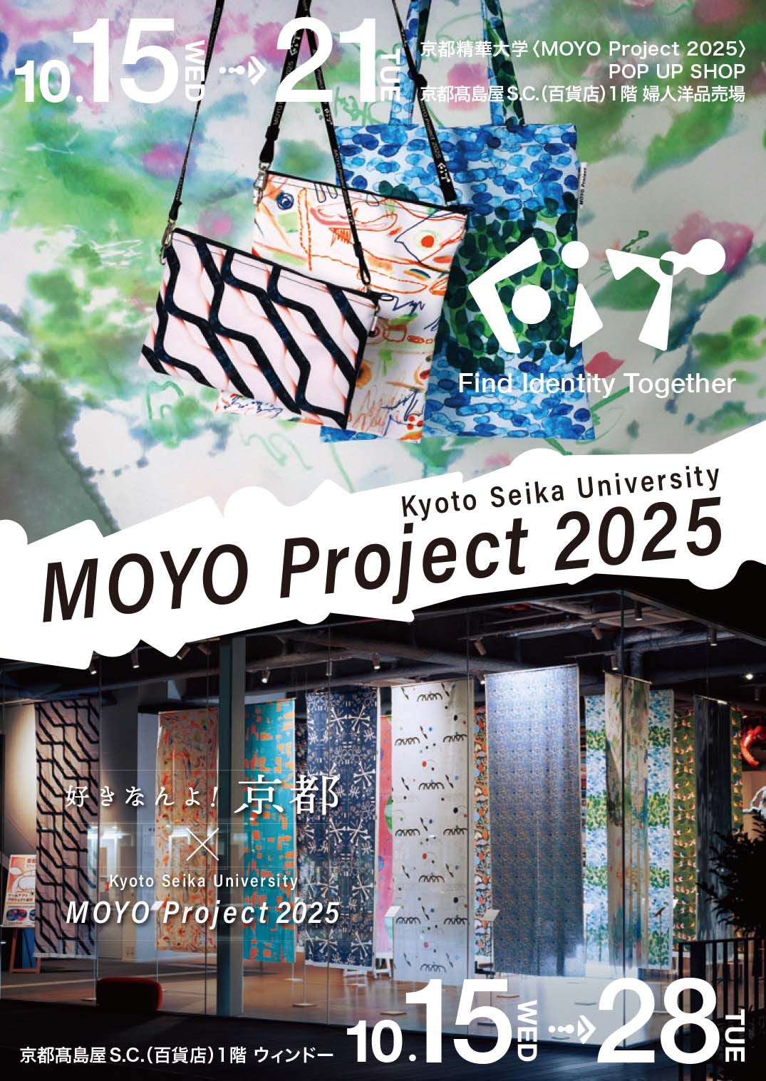 「京都高島屋S.C.」で開催中の「好きなんよ!京都」が、「京都精華大学」のデザイン学部ビジュアルデザイン学科「MOYO Project 2025」とコラボレーション! 学生が制作したトートバックやサコッシュなどが販売されています。