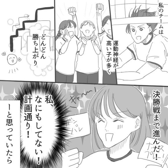 運動が苦手な主人公は、いつも球技大会では自分が活躍しなくても済む楽な種目を選んでいました。