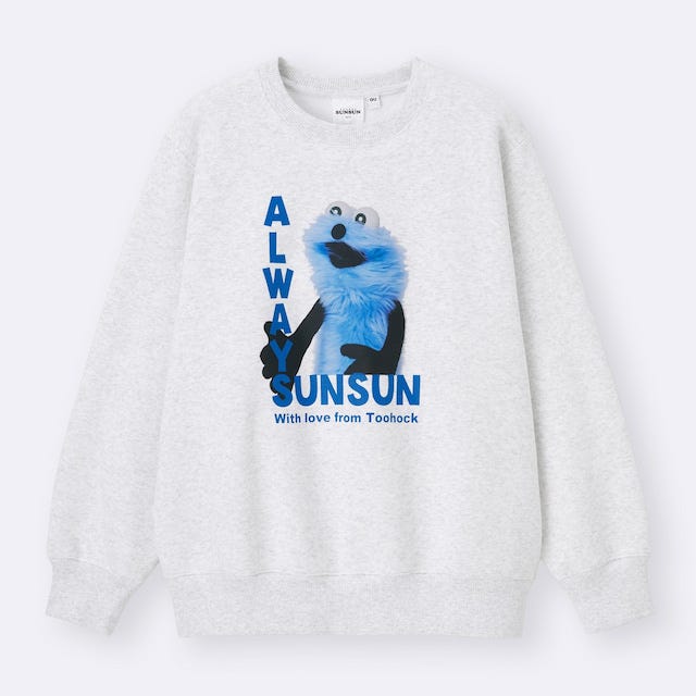 ティーン向けでは、ポップでおしゃれなデザインのクロップドフーディスウェットと、スンスンのワンポイントが入った靴下が登場。親子でさりげないペアルックも楽しめます。