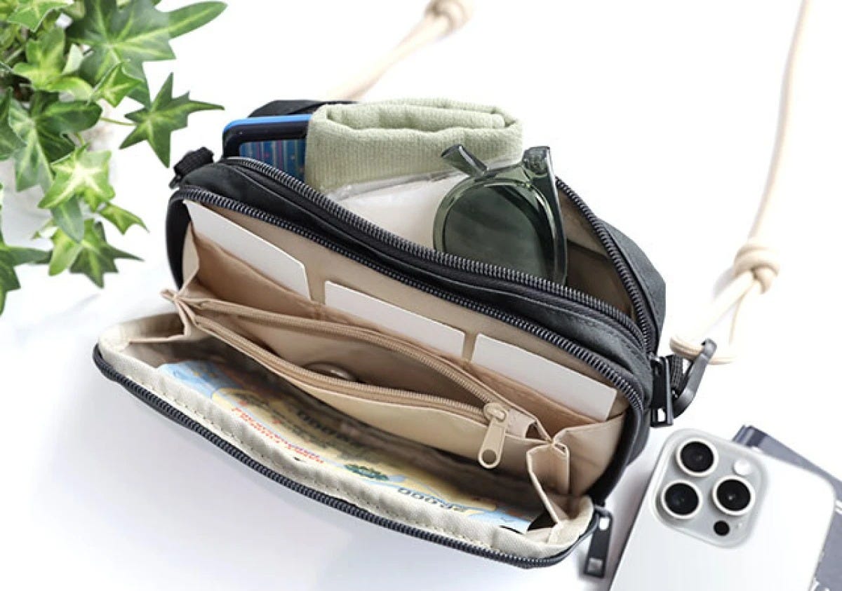 フロント部分は開け閉めしやすいダブルファスナー仕様で、ガバっと開き中が見えやすい!さらに、内側にも仕切りポケットがあり、小銭・お札・カードと分けて収納できます。