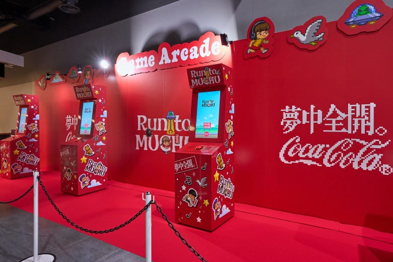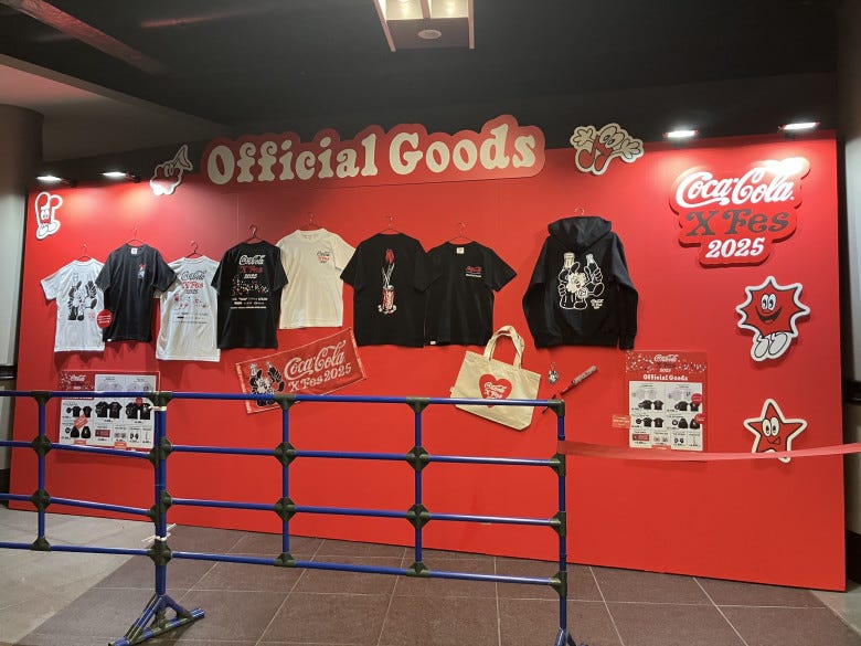 コカ・コーラの赤色で統一感のある空間に、VERDY氏のキャラクターが楽しそうに配置されていて、フェスの高揚感をさらに高めてくれます。