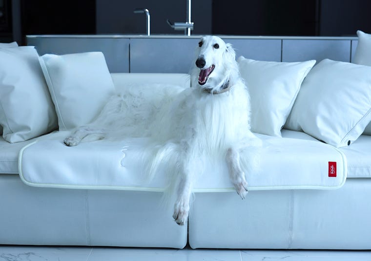 ユリックスが描くのは「犬も人も心地よく、美しく、幸せに暮らす未来」。商品は全て人と犬のペアで、寝具マット、イタリアンレザーの首輪、毛玉ケアやにおいを抑える高保湿のミストオイル、泡立ち・泡切れが良いドッグシャンプーなど。