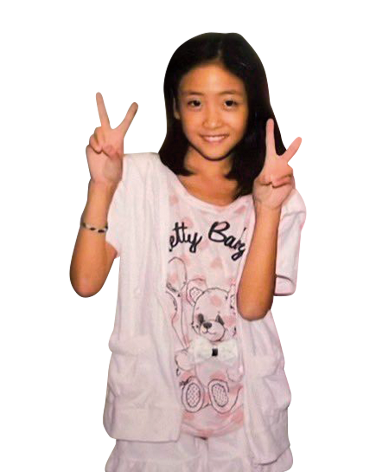 「小学校5年生くらい。写真で着てるパジャマがすごく流行ってて、修学旅行にどうしても持っていきたくて全身そろえて買ってもらった思い出♡