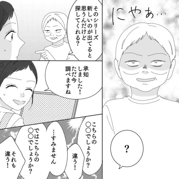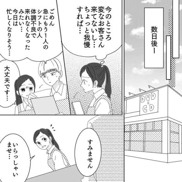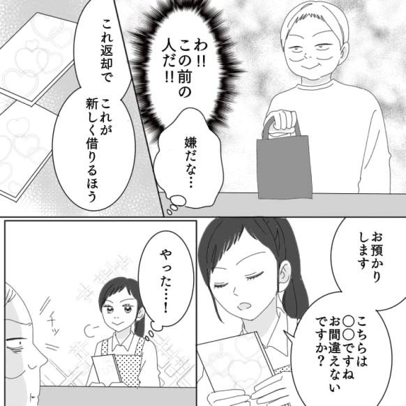しかしあるお客さんがニヤニヤしてくるので、タイトルを口頭で言う確認作業に抵抗を覚える主人公。
