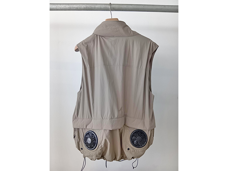 今年開催したパリのエージェント主催の3ブランド合同展(26年春夏物)では、「空調服」と協業したファン付きジャケットやベスト(税抜き5万円)が人気だった。海外バイヤーからは高い機能性を備えたテック系ファッションとして高く評価されている。猛暑の厳しい日本でもファン付きウェアは卸先が広がる見込みだ。