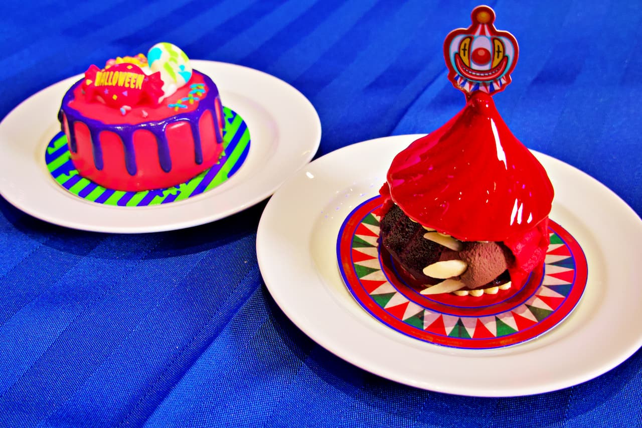 右:「ハミクマ・サイコサーカス・ケーキ〜ビターチョコ〜」(1,000円) 左:「ハミクマキャンディ・ケーキ〜ストロベリー〜」(1,000円) 「ビバリーヒルズ・ブランジェリー」でも、ハミクマスイーツを堪能できます。真っ赤なサーカステントから登場するという、ハミクマの生い立ちをイメージした「ハミクマ・サイコサーカス・ケーキ〜ビターチョコ〜」。チョコレートでハミクマの手もバッチリ再現された、禍々しくも美しいチョコレートケーキになっています。「ハミクマキャンディ・ケーキ〜ストロベリー〜」は、スウィートでサイケなカラーリングでハミクマキャンディの魅力を表現。見るだけで楽しい気分にさせてくれるケーキは、甘酸っぱくて意外とさっぱり味わうことができます。