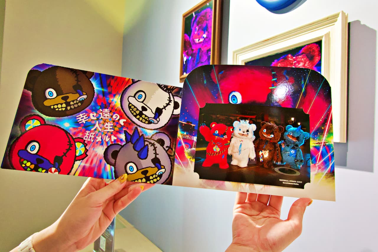 「死んでも写るのdeath! ハミクマ・グリーティング・フォト」(4,500円) 撮影後にもらえるフォトホルダーもキュートで、部屋に飾りたくなるデザイン。一緒に写った写真2枚に加え、ハミクマたちの特典写真1枚が付き、さらに各データももらえます。
