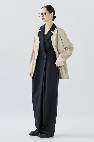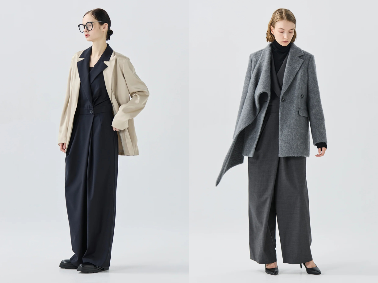 最新のコレクションは、残暑の長さを考えて25~26年冬春として発表。渋谷スクランブルスクエアのイベントスペースで展示会兼期間限定店を10月20日まで開催した。シーズンテーマは「リターントゥオフィス&コンパッション」。30代の働く女性のライフスタイルを想定し、都市生活における痛みをファッションで解消するウェアを出した。