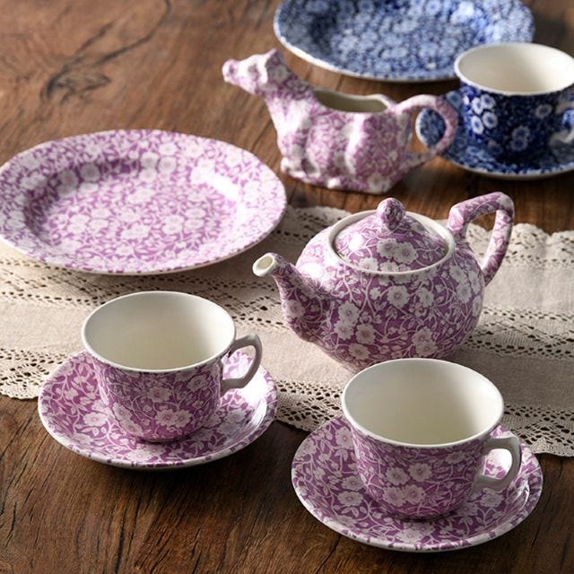 バーレイ「ブロッサムキャリコ ティーポットS」(19,800円)、「カップ&ソーサー」(各9,350円)、「プレートM」(5,280円)、「カウクリーマー」(11,000円)