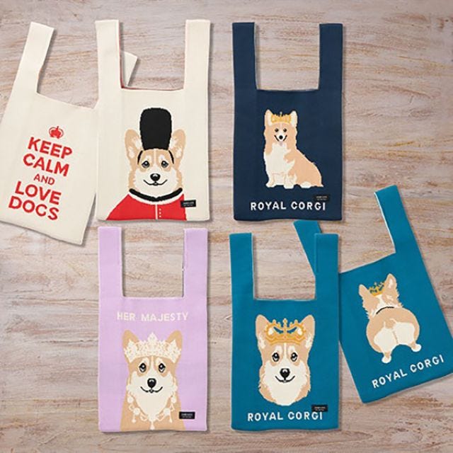 ジュビリー「ニットトートバッグ 英国ロイヤルコーギー各種」中国製(各3,850円)※PART2のみ出店