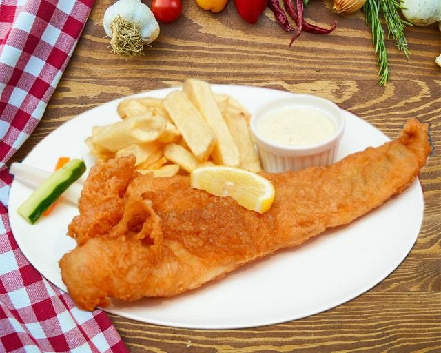 マリン「フィッシュ&チップス フィレ」(2,640円)<各日30点限り> 会場で本場の味わいを楽しむのもおすすめ。「マリン」では本場英国製法を忠実に再現調理したフィッシュ&チップスを、会場実演で提供。