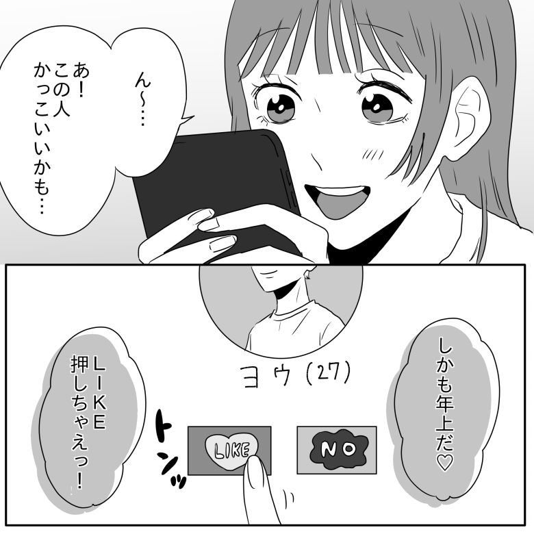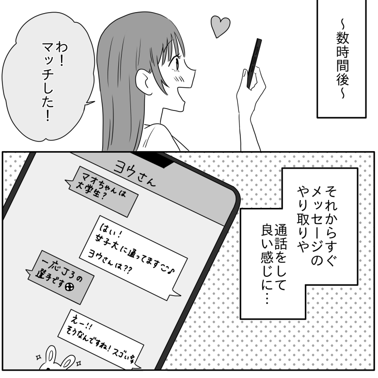 主人公・マオがマッチングアプリで出会ったヨウとはいい感じ。