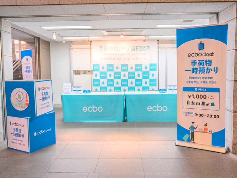 エクボクロークは、荷物を預けたい人と、空きスペースを持つ店や施設などをつなぐシェアリング型の手荷物預かりサービスで、スマートフォンで予約・決済ができる。
