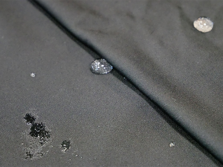 環境対応の一環で世界的に非フッ素化が進んでいるが、非フッ素剤には撥油性がなく、皮脂汚れなどが撥水性を低下させるのがネックだった。同社は水着用を中心に合繊ニットの委託加工を手掛け、撥水素材も扱っている。またポリエステルの風呂敷など独自の製品ブランドの販売を強化している。
