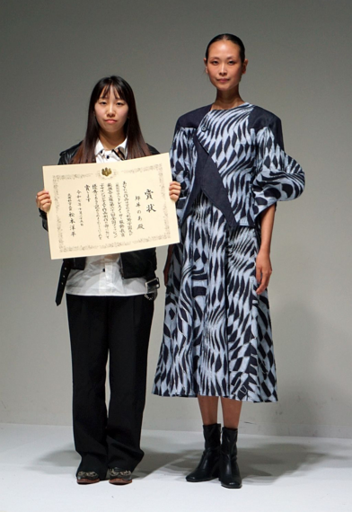大賞はデニム地に刺繍を施した後、カッティングとダメージ加工を重ね、立体的な凹凸感を出して布の表情を引き出した作品。技巧的かつ時代を反映したリアルさを併せ持つ点が評価され、3人の審査員が全員一致で大賞に選んだ。