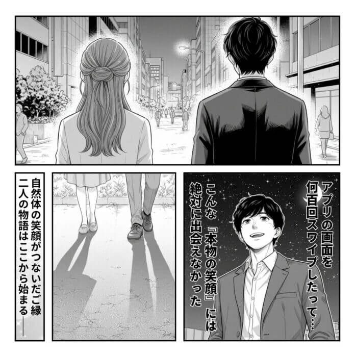【漫画】『マッチングアプリでは出会えない笑顔』―街コンで出会った“本物の人”の話