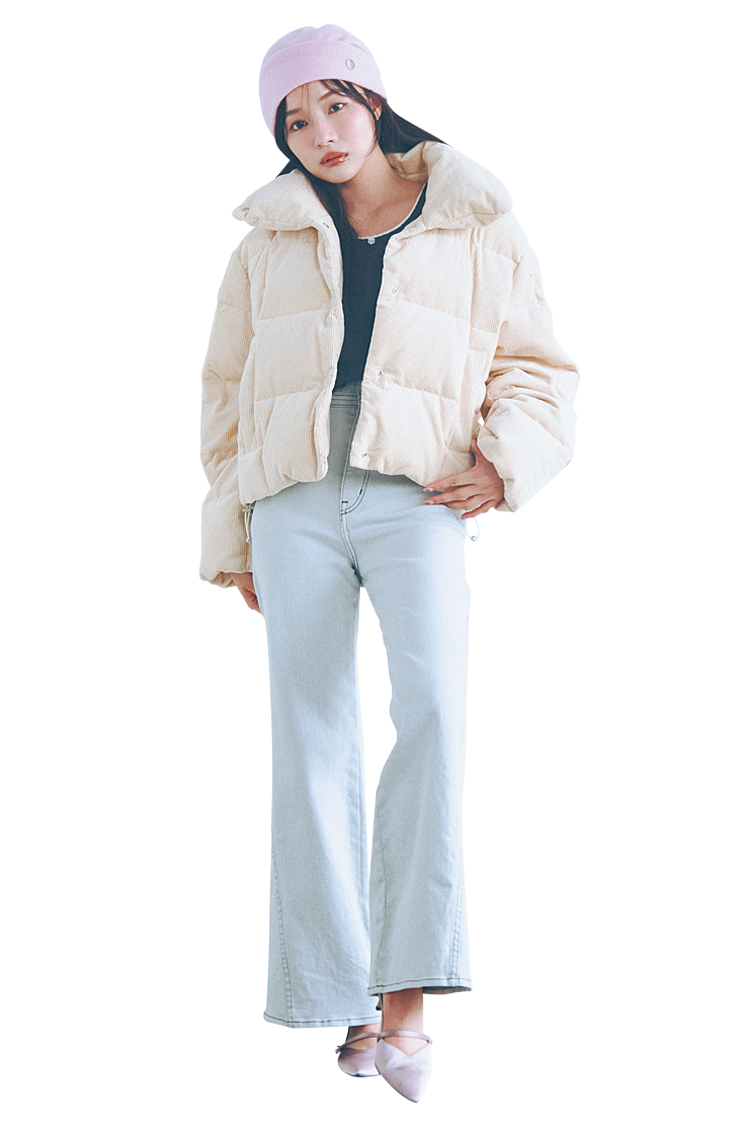 ほわ色好きなRayガールはブラックダウンで引き締め。
