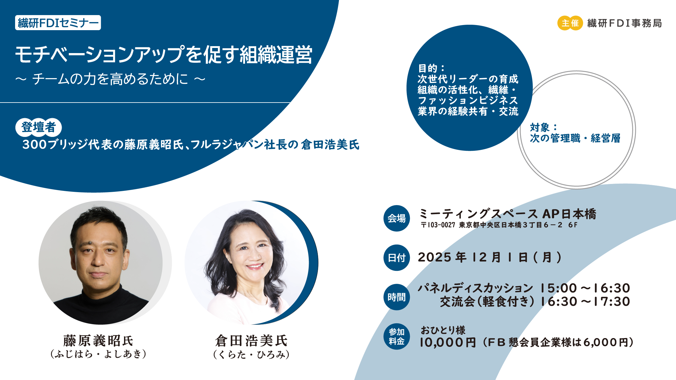 こうしたなかで、繊研新聞社は次世代の育成や人材の多様性、組織の活性化を目的とし、「繊研FDI」(ファッション・ダイバーシティ・インクルージョン)をスタートしました。繊維・ファッションビジネス業界の交流を促す「繊研ファッションビジネス(FB)懇話会」が40周年を迎えたことを機に、新たな分科会として立ち上げたものです。繊研FB懇と同様に、交流の輪を広げていくことを目指します。