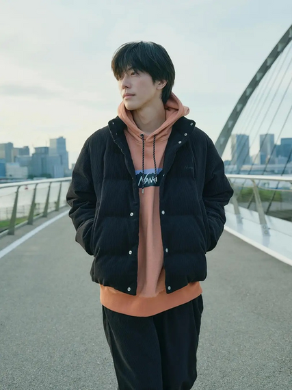 コーデュロイはストレッチ性と耐久性に優れた高機能繊維「ソロテックス」を採用し、ぬくもりのある見た目に反して軽量。ロフト感のあるボリューミーなシルエットで、トレンドを意識した。180グラムのダウンが封入され、保温性も高い。