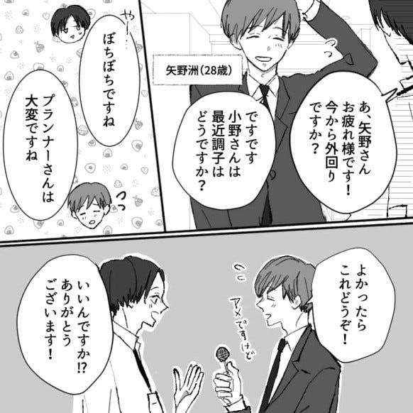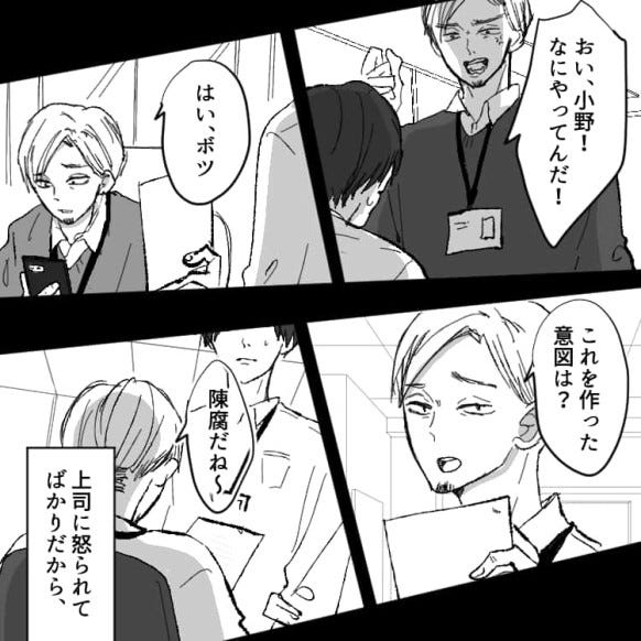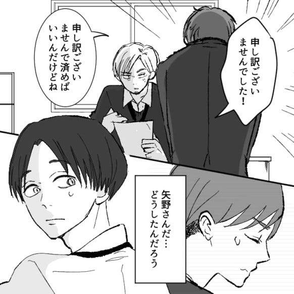 営業の矢野さんが、上司に怒られているところを見かけた主人公。