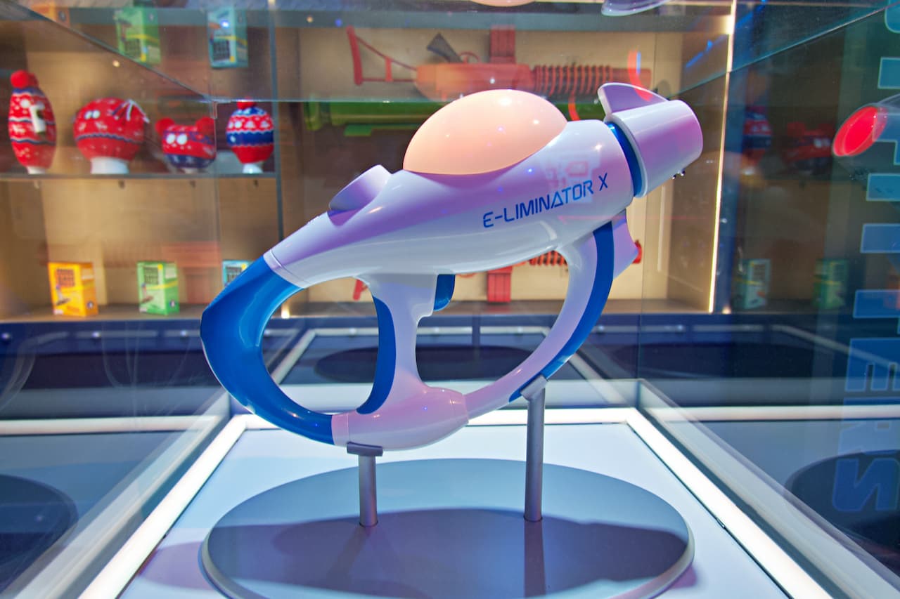 最新鋭のブラスター「イーリミネーターX」を手に、スクリーンに映るターゲットを撃ち・壊し・奪いながら、思う存分“悪党心”を解き放つことができます。子どもから大人まで楽しめるよう身長制限がなく、暑い日でも快適な室内型アトラクションとなっています。