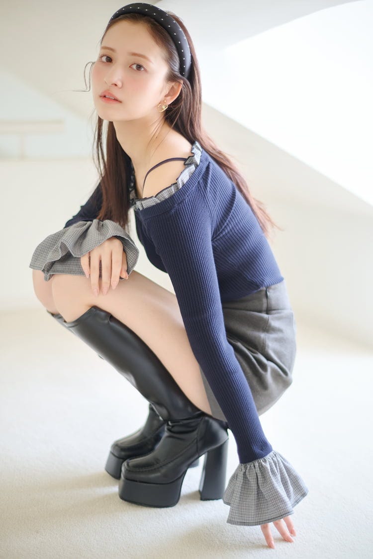 ニットからのぞくすべすべな肌が目にとまれば、それだけで彼の心拍数もアップ。攻めすぎないよう小さな面積で肌見せするのが沼らせのヒケツです。