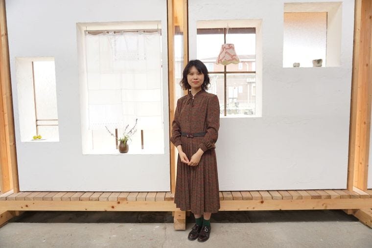 「服も建物もこのような再活用の仕方がある、と見てもらえたらうれしい」と清水薫子デザイナーは話す。展示は11月3日まで、事前予約制。