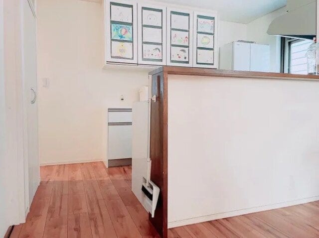 上の写真のように、筆者宅もリビングの床のゴミをすぐ掃除できるようにキッチンカウンターの脇にほうきとちりとりを置いています。
