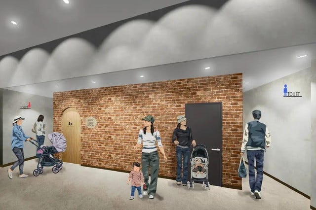 (左)隣接する商業施設サザンモール六甲B612との接続部、(右)新設されるトイレ、ベビールーム \from Editor/