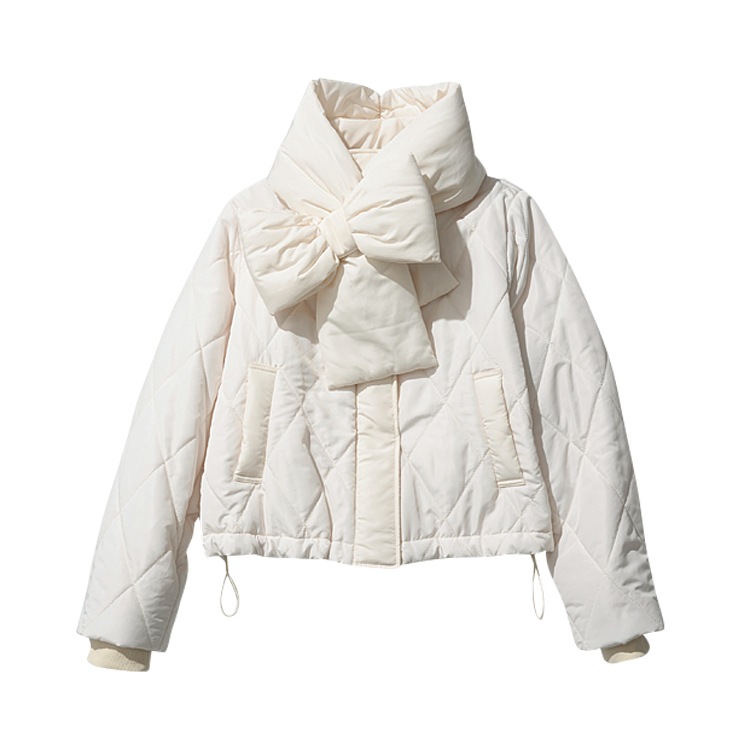取りはずし可能なでかリボンマフラー。ふわふわなキルティングで可愛さ加速♡