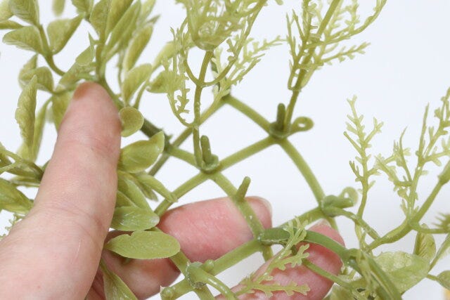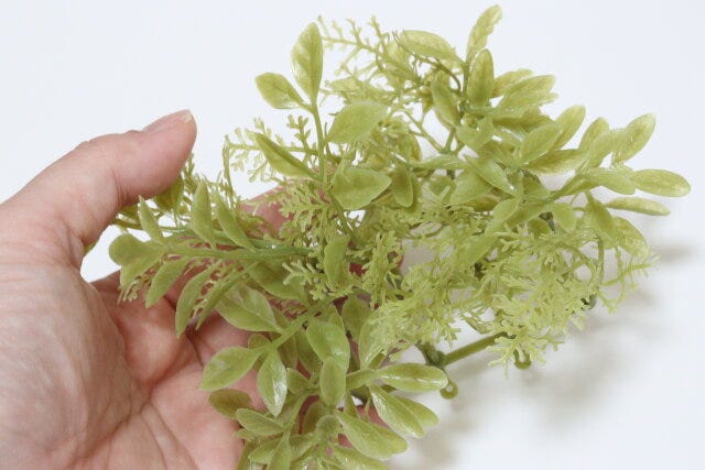 『ダルカラーマット』は突起に、フェイクグリーンが刺さっている形なので、マットからいくつか葉っぱを抜いて…。