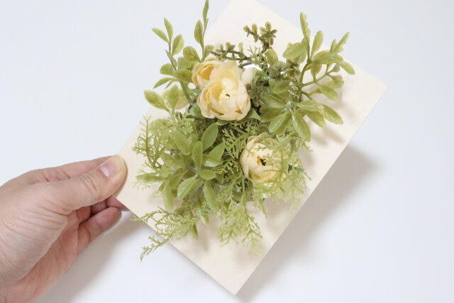 マット状なので平たいお皿状の花器や、額に貼り付けたいというときにぴったり!手軽にフラワーアレンジメントを楽しむのにぴったりなアイテムでした。