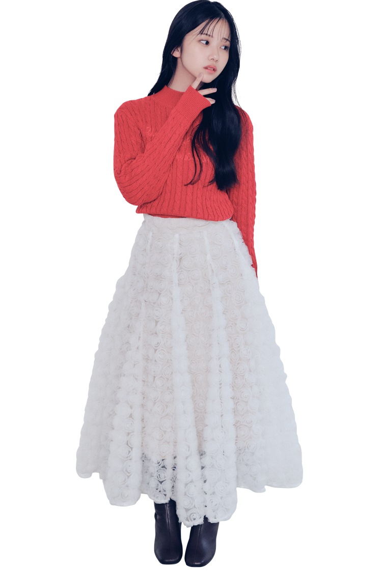冬気分を高める赤ニット×白がロマ可愛い♡