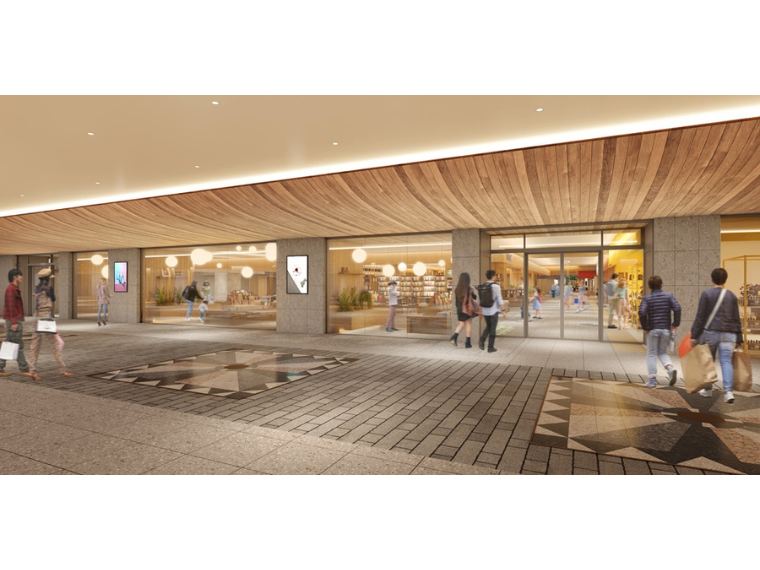 「モダンヒュッゲ」をテーマに、木目調の温かみのある内装にし、駅直結ながら落ち着いた気持ちで買い物できる空間を目指す。イベントなどを開催できる広場も設置する計画だ。