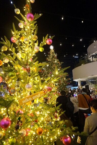 3階メイン広場に8メートルの生木の大型ツリーを中心に10本設置し、それぞれニコアンドのクリスマスオーナメントで飾られた。各施設で年末に向けた商戦を彩るクリスマスイルミネーションに力が入るが、テナントと協業するのは珍しい。
