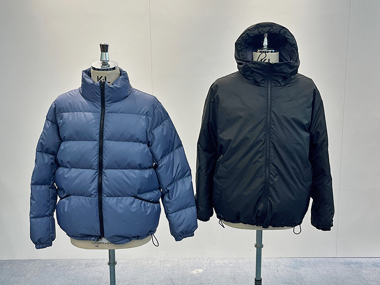 アンフィーロは、ソラメントを使って日常から通勤まで幅広いシーンに対応するアウターを揃えた。リバーシブルでフード付きのジャケット(税込み3万1990円)、立ち襟で首元まで暖かいジャケット(2万7990円)の2型。800フィルパワーのダウンを使用している。撥水(はっすい)機能があり、自宅で手洗いもできる。