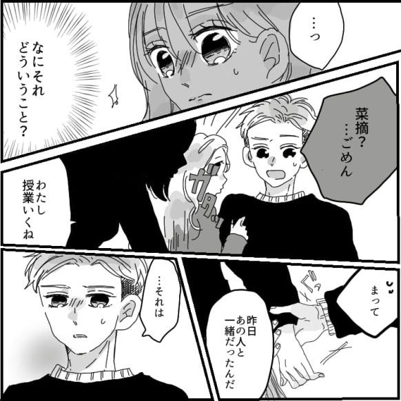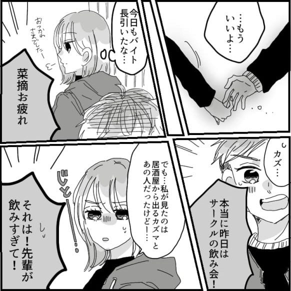 するとバイト終わりの菜摘が、カズマが明日香先輩と2人きりでいるところを見かけてしまいました。