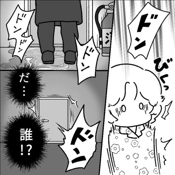 あわてる主人公に追い打ちをかけるように、ドアをたたく音が聞こえてきます。ドアの向こうにいるのは、いったい誰なんでしょうか。