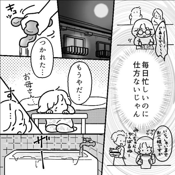 お風呂に水を溜めながら、眠ってしまった主人公。
